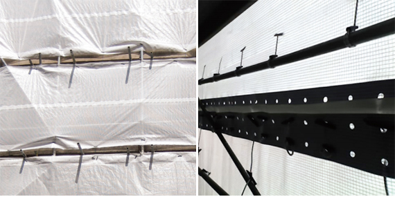 Webbing bands : PE Tarpaulin, 14x14/sq.inch, one side lamination with prepunched eyelet holes.