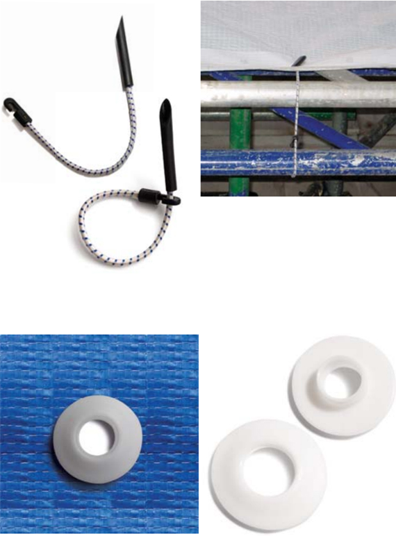 Standard size : 5.0mm Ø x 28cm cord. Ideal for fixing scaffolding sheet & tarps on frames or structure.